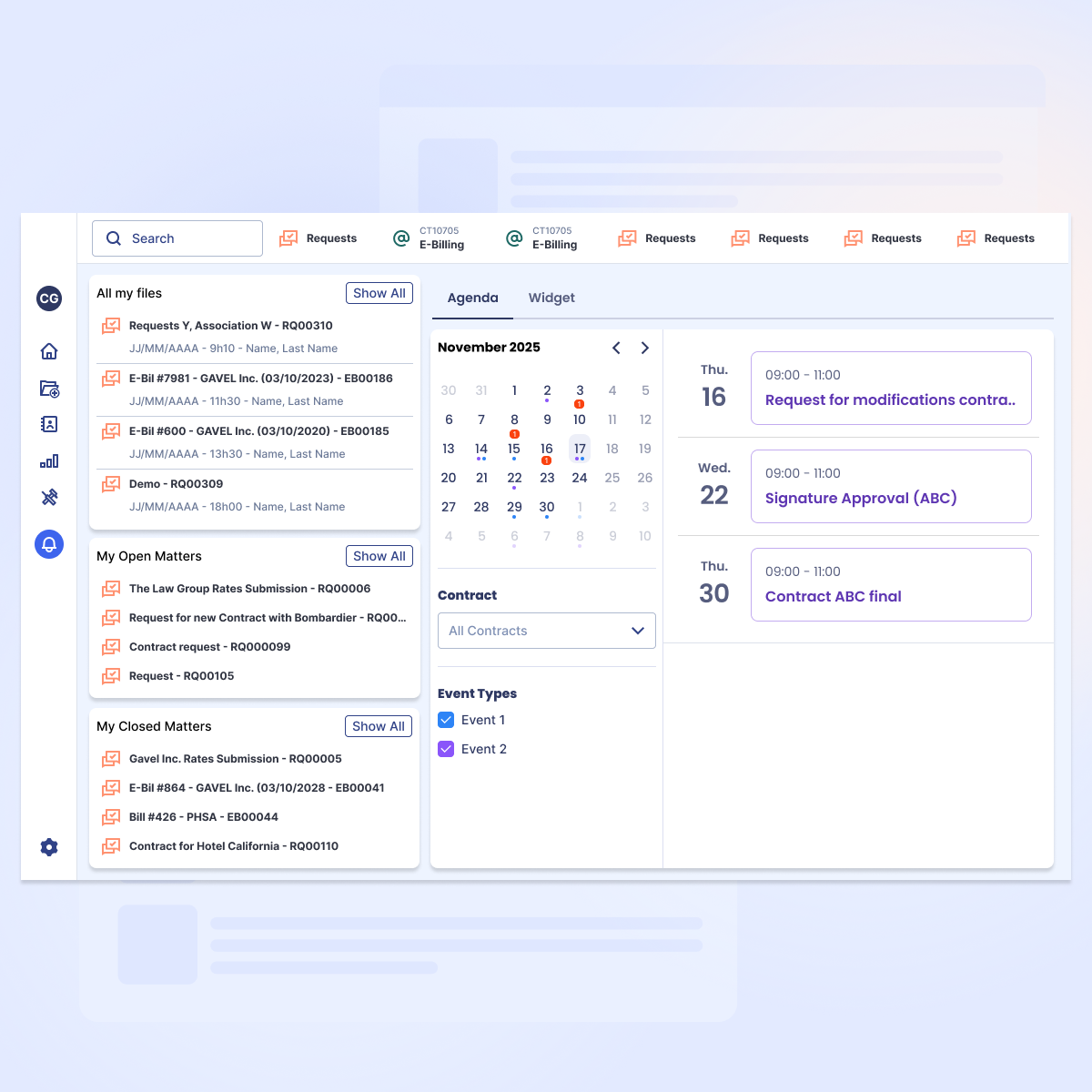 Provide external firms and vendors with a dedicated portal to submit invoices directly. Invoices are automatically validated against your billing rules, with options to approve, adjust, or dispute them online. Monitor legal spend against budgets and provisions in real time, while consolidating documents and communications linked to each matter.
