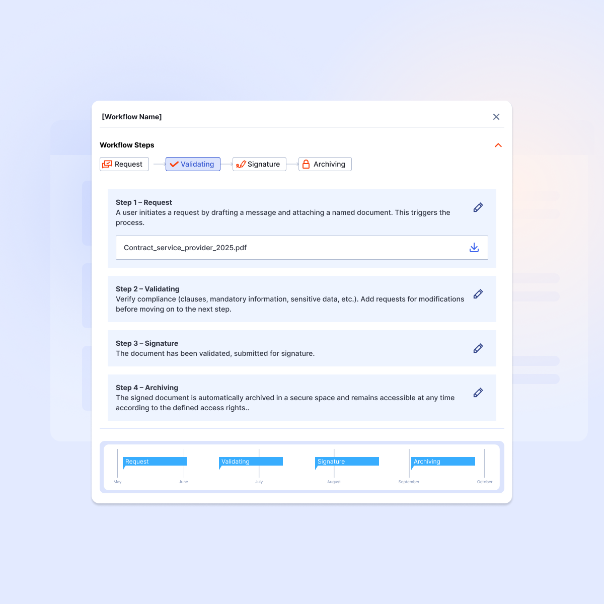 Set up approval workflows that automate and simplify processes. Always access the most up-to-date version of documents to ensure accuracy and eliminate duplicates. Track matters and intake requests in real time, plan actions according to key deadlines, and optimize team organization.