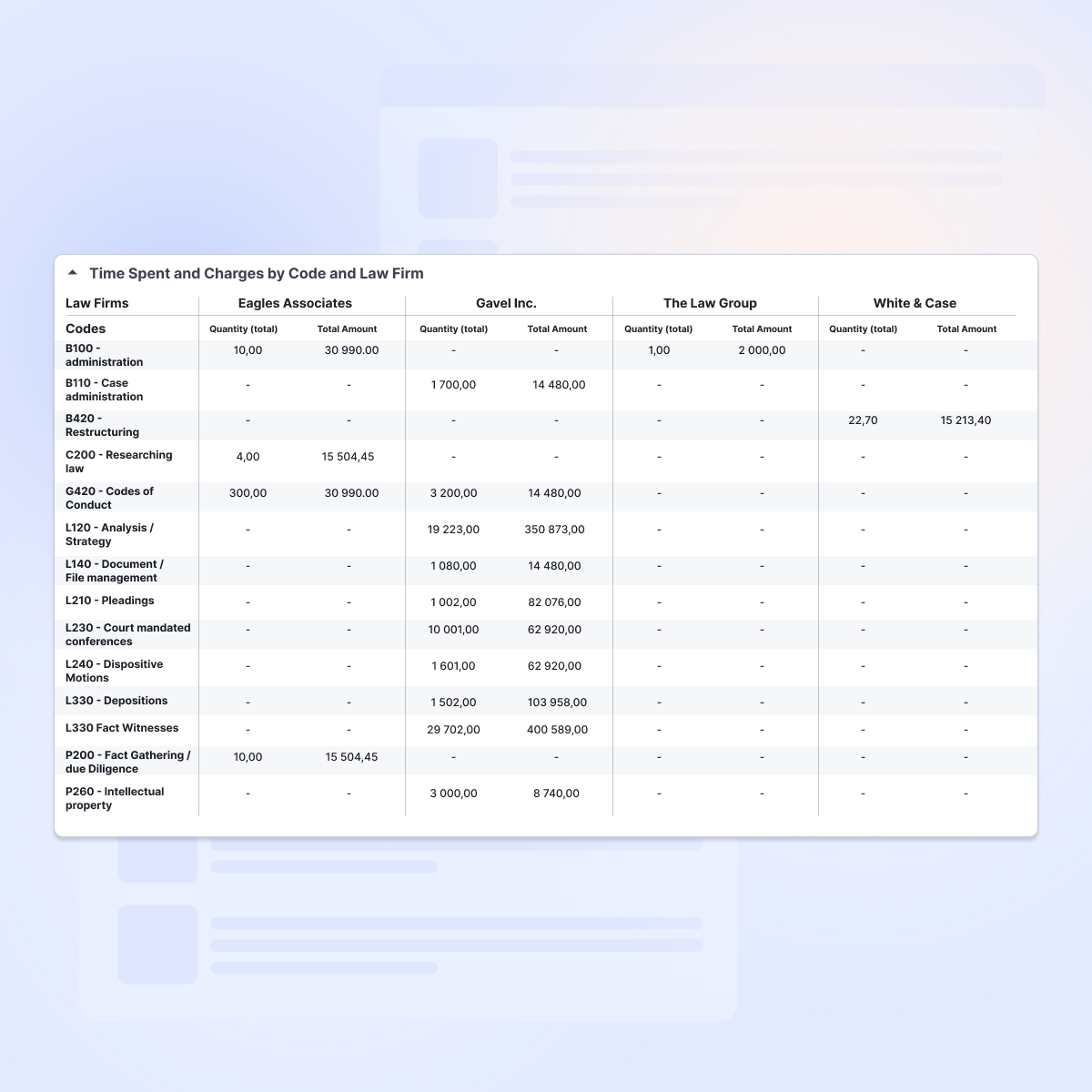 Compare actual expenses against budgeted amounts in real time, matter by matter. Automatically detect anomalies such as overruns, duplicates, or incorrect hourly rates and resolve them quickly. Your processes become efficiency drivers, ensuring optimal cost control.