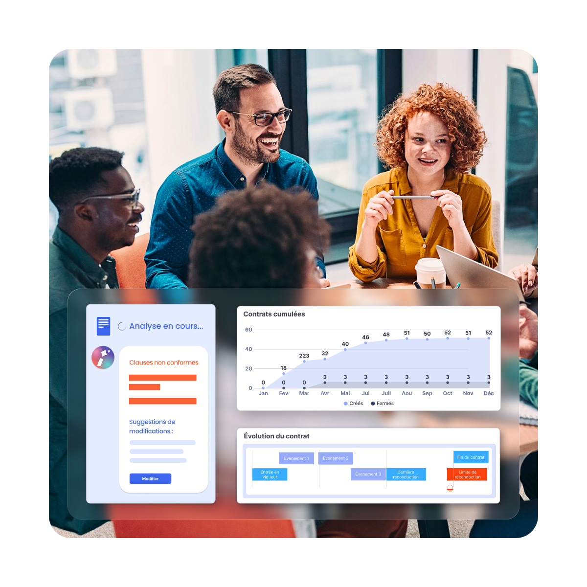 Centralisez les demandes contractuelles dans un espace collaboratif, sécurisé et intuitif. Partagez les documents, commentez-les, suivez les modifications en temps réel et assignez les tâches aux bons intervenants. Collaborez efficacement avec les parties prenantes internes et externes grâce aux intégrations natives Microsoft Office et Outlook.